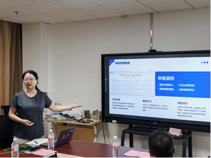与智慧树网联合举办,以“数智赋能专业与课程建设”为核心,围绕2025年教改项目申报展开研讨。靳洪允副院长主持本次活动,学院教师、教学秘书、及部分兄弟学院教师参加。智慧树网金课咨询师吴月淼作主题分享,与会人员就AI赋能教学课程建设进行集中研讨。