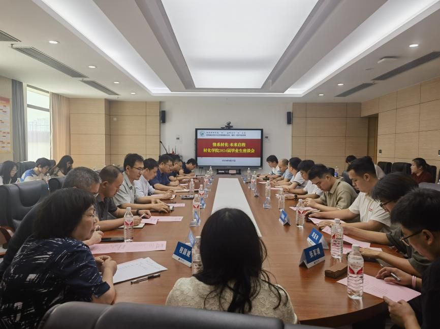 在材化楼317会议室举行2024届毕业生座谈会。武汉锐科光纤激光技术股份有限公司人力资源部副部长刘叶青、全体院领导、各系(中心)负责人、教师代表及毕业生辅导员等与20余位毕业生代表参加会议。会议由院团委书记侯亚飞主持。