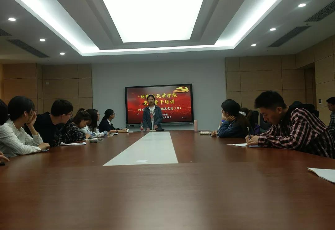 10月24日中午12:30,在未来城校区材化楼317举办果冻传媒 党员骨干培训。学院党建办公室党员管理部部长李雨蝶做了题为“当好责任党员,规范党建工作”的报告,果冻传媒 全体责任党员参加了此次培训。