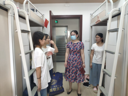 搬迁工作刚刚结束,学院领导和院办老师随即走进学生宿舍,看望慰问搬入新宿舍的同学们。老师们详细询问了目前学习和生活中遇到的困难,及时了解同学们的需求,同时提醒同学们疫情常态化防控不松懈,提高安全防范意识。入驻未来城后,2019级的同学们纷纷表示,和老校区相比,新校区的宿舍条件大大改善,四人间里空调、冷热水、储物间一应俱全,同学们对接下来的学习生活充满了期待。