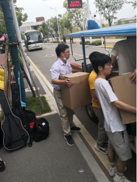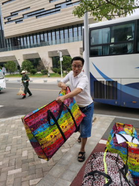 院办范良老师协助学生搬运行李