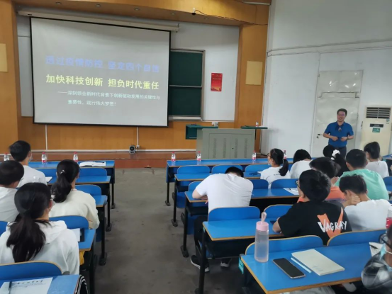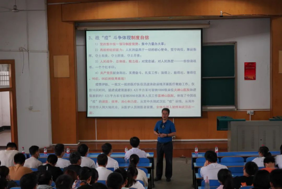 王华副校长的讲座以新冠肺炎疫情防控为主线,以科技创新为重点,通过一张张真实的图片,一段段真切的文字,一个个英雄的群体,全景式再现了抗疫的磅礴场景,回溯了可歌可泣、刻骨铭心的战疫岁月,重温了惊心动魄、艰苦卓绝的战疫过程,让广大师生受到了抗疫精神的生动教育。