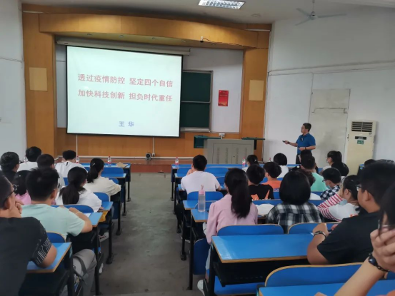 在讲座中,王华副校长从全球视角引导师生审视抗疫问题,从中西方防控态度、防控方略、防控力量、防控效果等多角度进行比较分析,特别是从中国集中力量办大事的优势、加快科技集成创新等具体展开,用详实的数据、生动的案例,深入浅出地阐释了四个自信的科学内涵。
