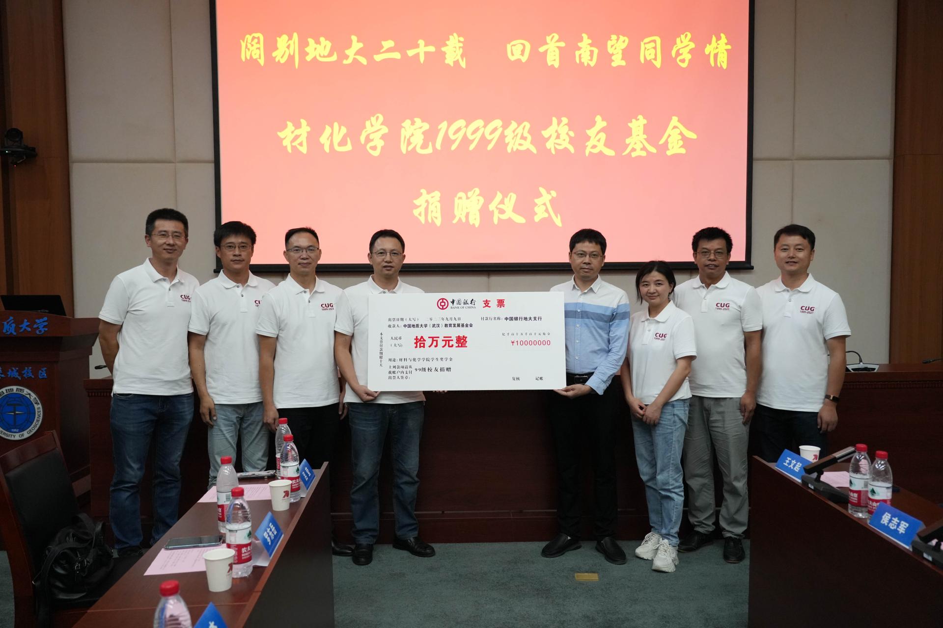 座谈会期间,罗东岳校友代表99级全体校友为学院捐赠十万元,设立“材化玖玖奖学奖教金”,用以奖励果冻传媒