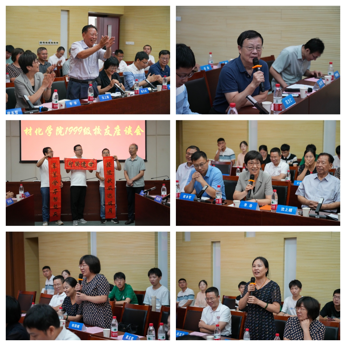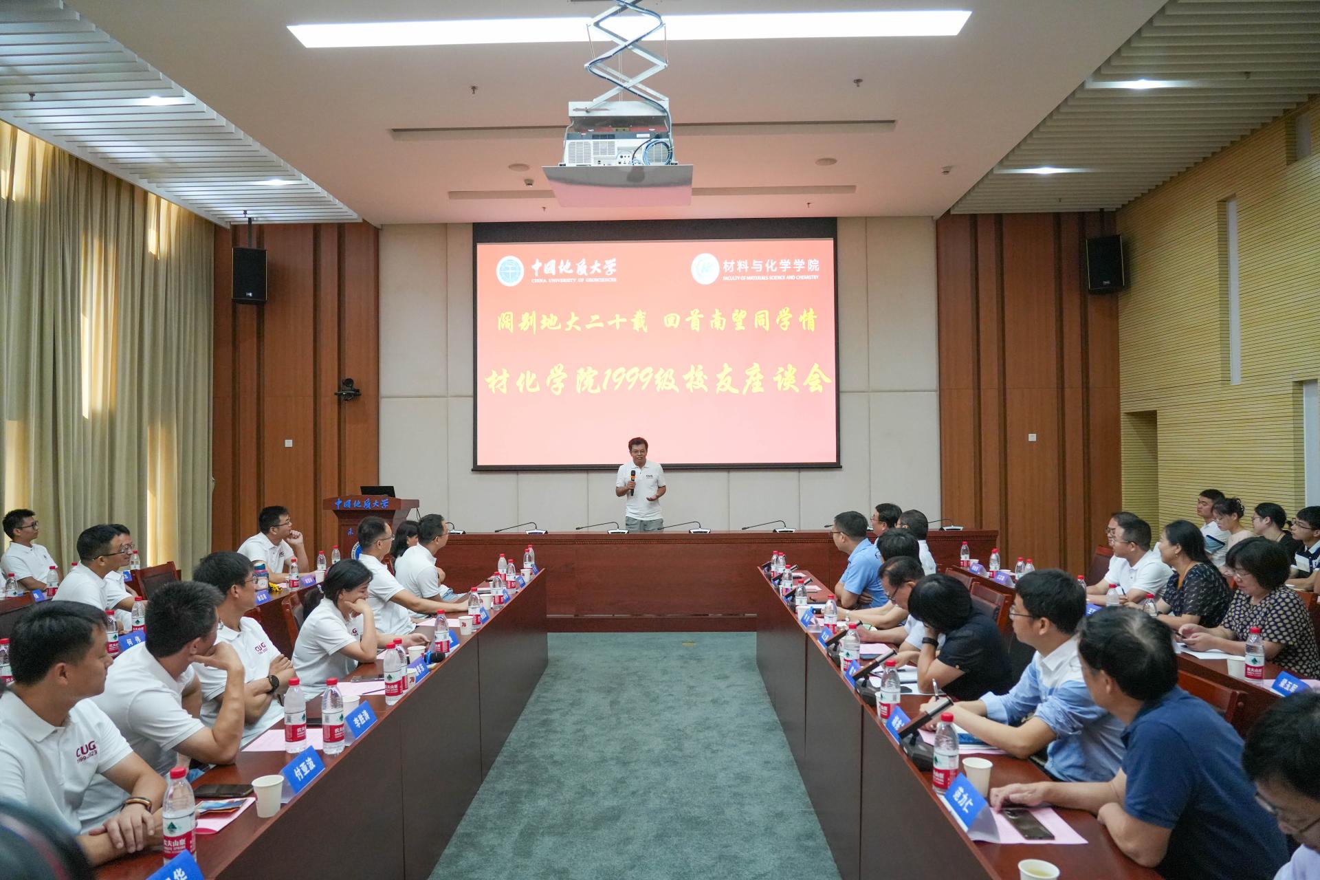 党委书记梁本哲,院长胡兆初,学院党委副书记余江涛,老教师代表沈上越、范力仁,材料系、化学系、院直教师代表,学院学生会主席团以及地子归社团学生代表与99级40余名校友欢聚一堂、座谈交流。学院党委副书记余江涛主持座谈会。