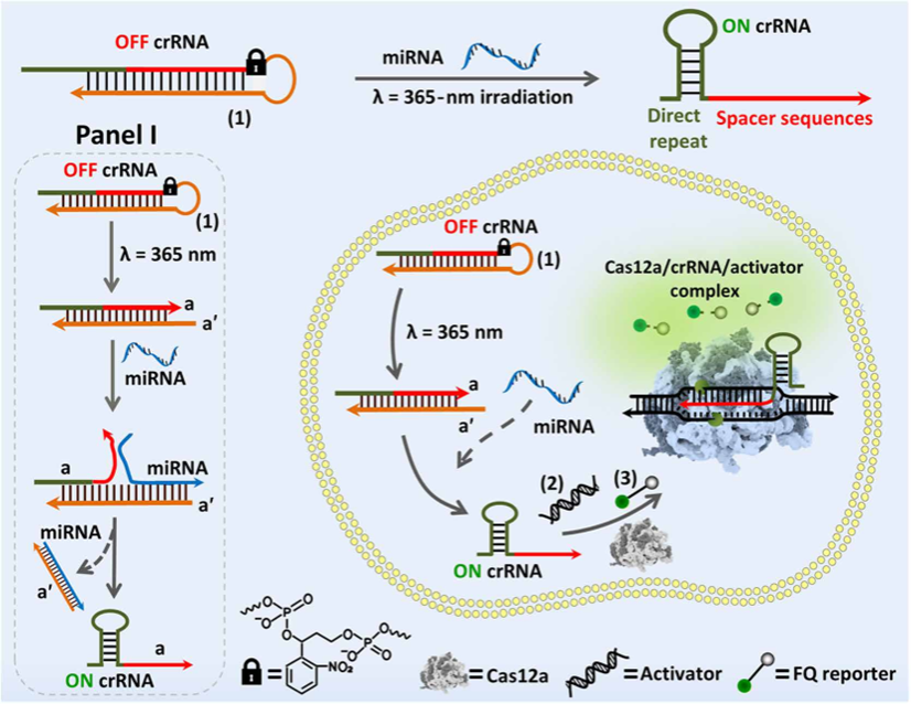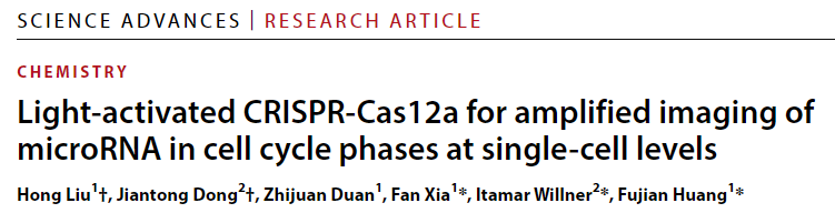 近日,果冻传媒 夏帆教授/黄福建教授课题组在光激活CRISPR系统高效单细胞miRNA成像研究方面取得进展,相关研究成果以“Light-activated CRISPR-Cas12a for amplified imaging of microRNA in cell cycle phases at single-cell levels”发表于Science Advances (Sci. Adv. 2024,10, eadp616。 微小RNA(miRNA)是一类小的非编码RNA,它的异常表达与各种疾病的发生和发展密切相关,可作为癌症诊断、预后、进展和复发的生物标志物。然而,细胞内的miRNA含量很低,因此需要开发信号放大的miRNA检测方法。传统的miRNA检测方法,如实时荧光定量PCR(RT-qPCR)和滚环扩增(RCA),虽有较高的灵敏度,但在单细胞水平上的检测和成像仍存在挑战。 夏帆教授/黄福建教授课题组在前期光响应功能核酸生物传感研究基础上,发展了一种新的光激活CRISPR系统用于活细胞中miRNA-21的信号放大检测及其成像。该系统在单细胞水平上实现时空选择性激活,以评估miRNA-21在不同细胞周期阶段的相对表达水平,从而绘制单细胞阵列中不同细胞周期阶段的miRNA-21含量分布图。该方法为深入研究不同细胞周期中miRNA的功能,从miRNA水平上分析细胞周期调控的新机制提供了一种有力的分析手段。 该研究工作果冻传媒 (武汉)博士生刘红为论文的第一作者。希伯来大学Itamar Willner 教授、果冻传媒 (武汉)夏帆教授和黄福建教授为本文的共同通讯作者。该工作得到了国家自然科学基金重大项目,国家重点研发计划以及中-以国际合作等项目资助。(编辑:黄福建 审稿:梁本哲) 论文链接://www.science.org/doi/full/10.1126/sciadv.adp6166