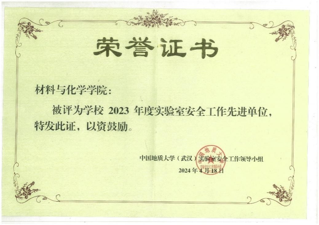 5月27日,我校在南望山校区召开了2024年度实验室安全工作会议。我院获评“2023年度实验室安全工作先进单位”,黄绪桥老师获评“2023年度实验室安全工作先进个人”。