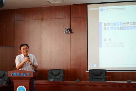 湖南大学聂舟教授的报告题目是《Novel recombinant protein toolkits:from biosensing to cell regulation》,聂教授在报告中介绍了自己和团队在核酸生物成像及细胞调控领域取得的系列重要进展。