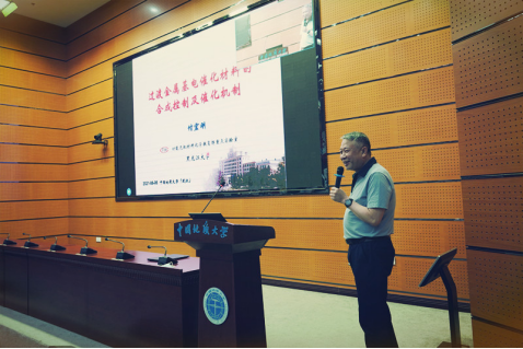 黑龙江大学付宏刚教授的报告题目是《过渡金属基催化材料的合成控制及催化机制》,付教授在报告中介绍了课题研究背景,TiO2纳米晶的晶相和表面结构调控、氮化碳的组装合成和过渡金属电催化材料的尺寸控制及异质结构,同时讲解了材料的控制合成及在光催化和电催化方面的应用。