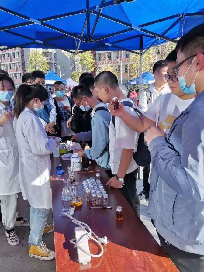 主办,本届活动主题为“化中问学,创中求新”,由于疫情影响,团队九月份才开始开展实验,在时间紧、学业重的双重压力下,团队成员们自主设计,自主创作,不断推陈出新,向观众们揭示了新奇的化学学科奥秘,普及了化学学科前沿知识,该活动在培养学生创新意识和创新能力方面发挥着重要作用。