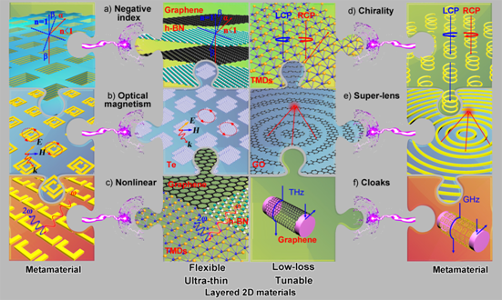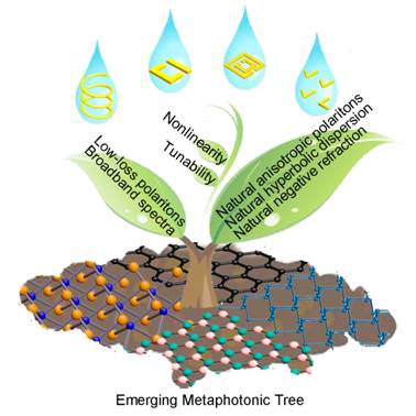 该论文围绕作者们近年来的研究工作:两个丰富而令人兴奋的研究领域——层状二维材料和超材料的交叉重叠部分。超材料是具有广泛应用前景的人工材料,例如负折射、完美透镜、亚波长成像和隐身。而使用基于层状二维材料的超材料以实现超光子特性的可能性已得到了广泛证实。由于二维材料具有高度的可调谐性和可调整性,并且易于被进行微纳加工,此外还具有天然负折射、天然各向异性、甚至天然双曲色散等多种光学特性。层状二维材料与常规超材料的结合有望实现多种预期应用。在这篇综述中,作者们阐述了超材料的概念及其相关的超光子能力是如何自然地在层状二维材料中诞生。层状二维材料多功能性使得构造新颖的光学器件成为可能,器件可在从可见光到太赫兹的宽频率范围内工作,并且具有低损耗、高速、可调性和小型化等特点。这一新的研究领域将光子学、光电子学和表面等离激元光子学领域与超材料领域联系起来,并为层状二维材料启发的超光子器件未来创新提供见解。此篇综述将有益于广泛的科学人员,包括物理学家、材料科学家、化学家、设备和光学工程师,内容涵盖了基于二维材料的天然超材料基本结构、材料工程、基础物理、光子和光电器件等。