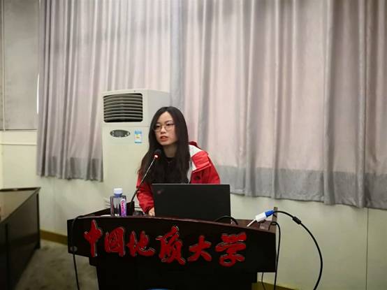 青年教师罗丽荣副研究员在向专家介绍自己的研究方向