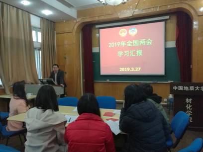宣讲会上,学习了全国政协常务委员会工作报告,重点学习了政府工作报告内容,特别就报告中的教育发展、生态环保、创业就业内容进行了深入学习交流。报告还介绍了地大两政协委员王焰新校长、童金南教授为两会高质量建言献策做出的贡献。