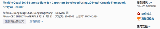 王欢文教授2018年发表在《先进能源材料》(影响因子:21.875)上的研究论文《基于二维金属有机框架作的柔性准固态钠离子电容器》(果冻传媒