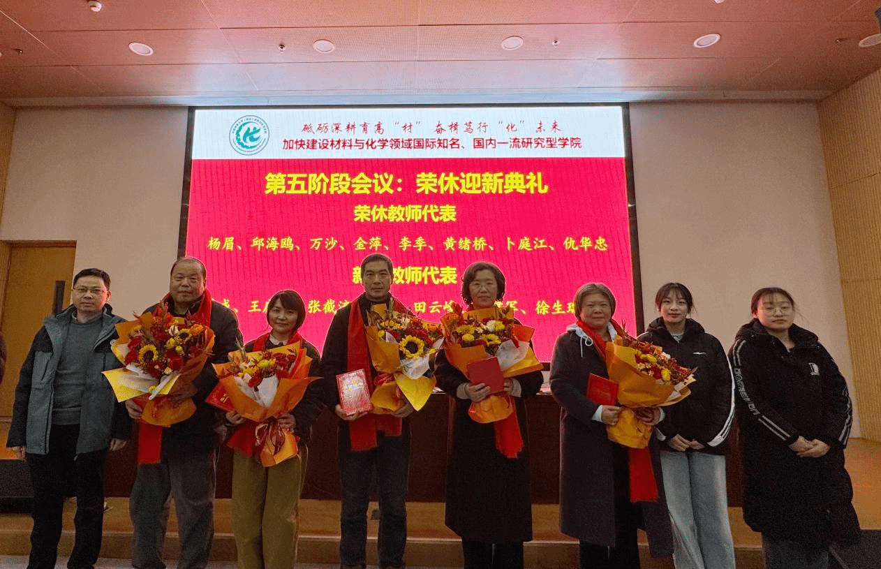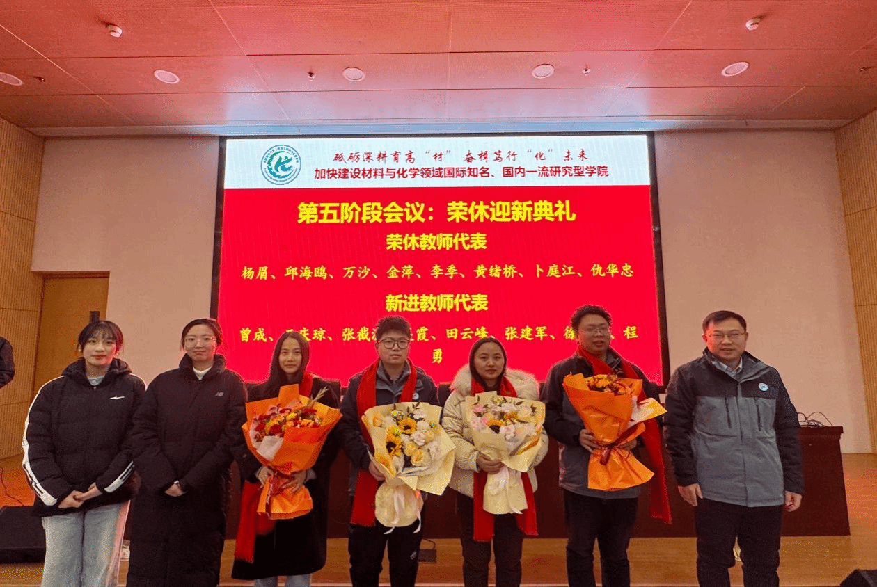举行荣休迎新典礼。院长胡兆初为退休教职工万沙、黄绪桥、金萍、杨眉、卜庭江等颁发荣誉证书,党委书记梁本哲为新进教职工吴霞、张建军、曾成、张截流等颁发荣誉证书,学生代表分别为荣休新进教职工献上鲜花和围巾,表达学院对荣休教职工的感恩与敬意,对新入职教职工的热烈欢迎与殷切期待。