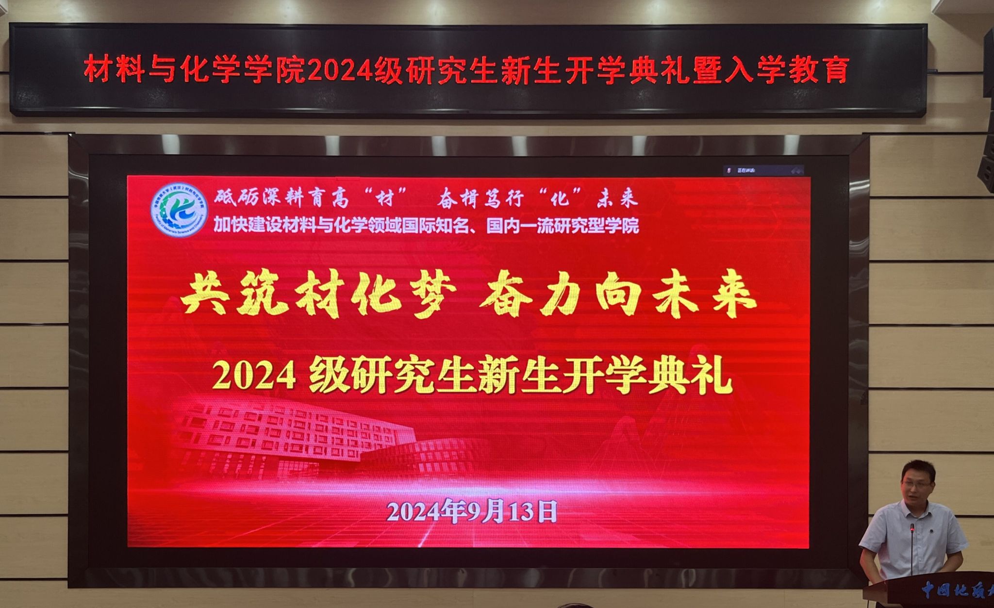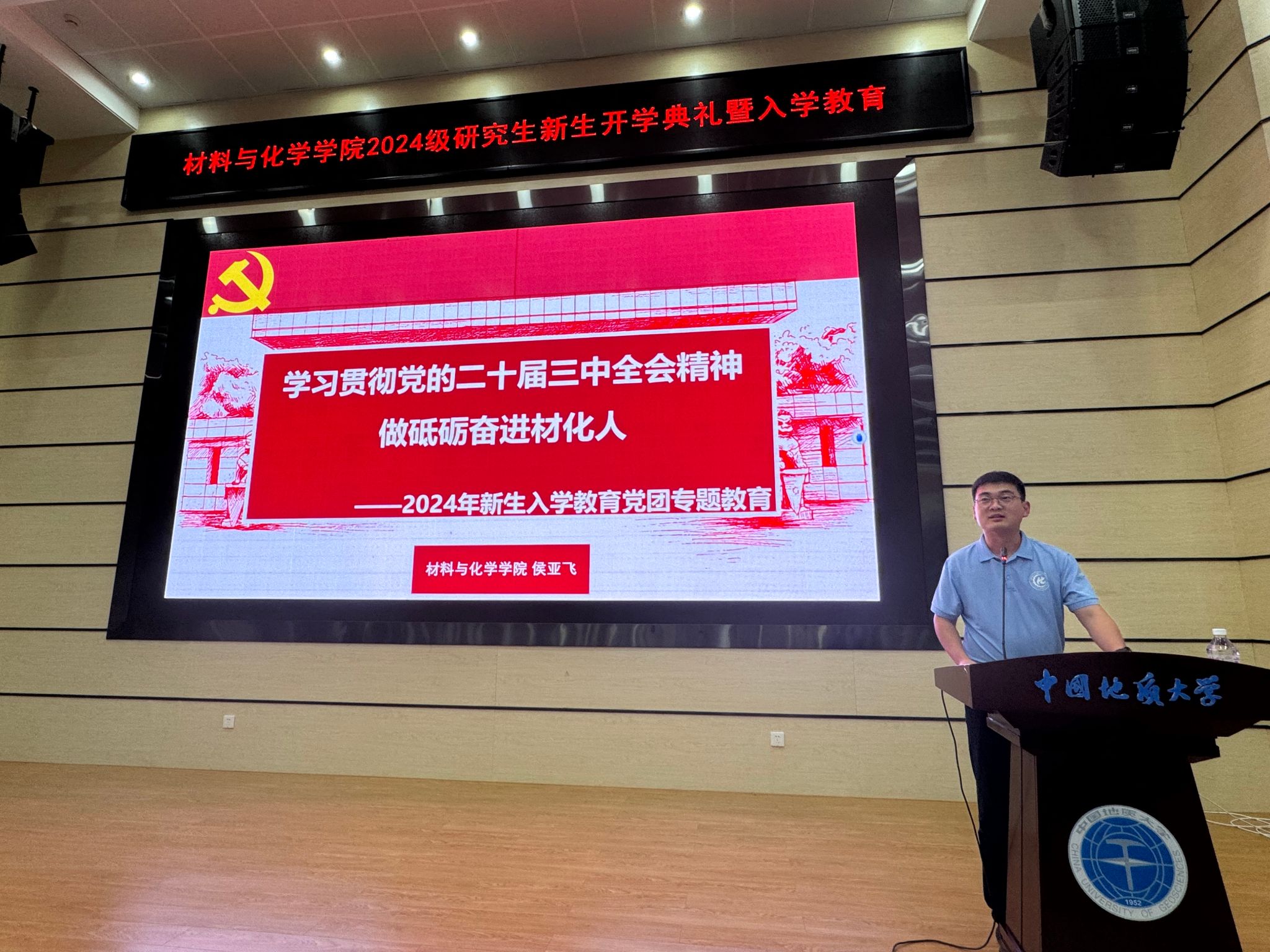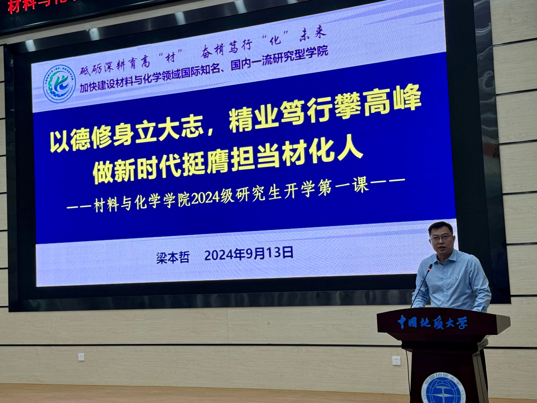 学院党委书记梁本哲总结发言,并讲开学第一课。他以“以德修身立大志,精业笃行攀高峰,做新时代挺膺担当材化人”为主题,从六个方面介绍了学院的发展历程、建设成效及特色优势,他勉励新生:一是要为国攀登,争做地大精神“传承者”;二是要重新起跑,争做全新赛道“先行者”;三是要追求卓越,争做矢志创新“排头兵”;四是要坚守底线,争做学术道德“捍卫者”;五是要挺膺担当,争做科技报国“践行者”;六是要奉献社会,争做科教惠民“志愿者”。他希望全体导师身正为范,争做立德树人“大先生”。他希望全体研究生以材化为基石,将论文写在祖国大地上,成就精彩人生。