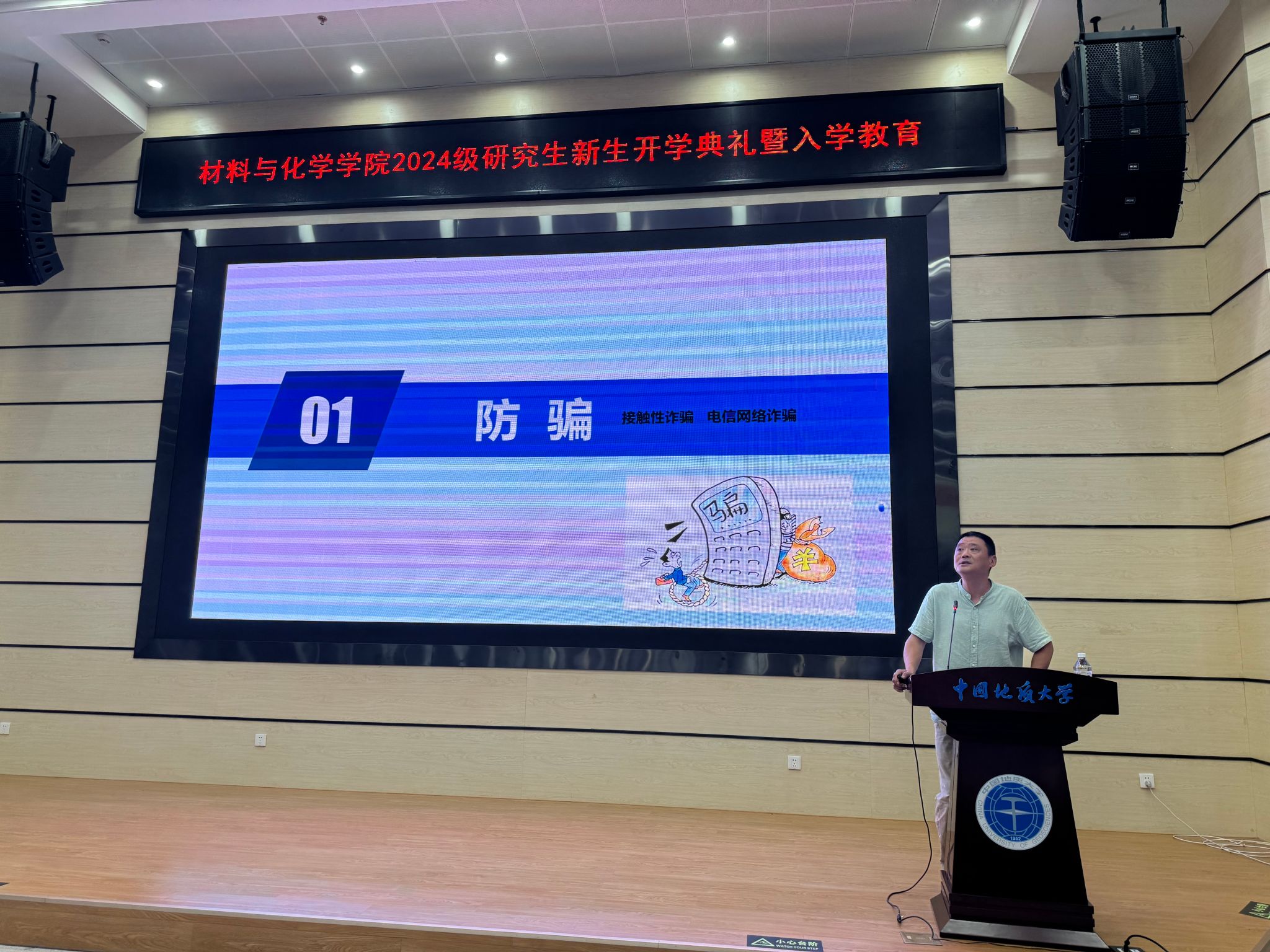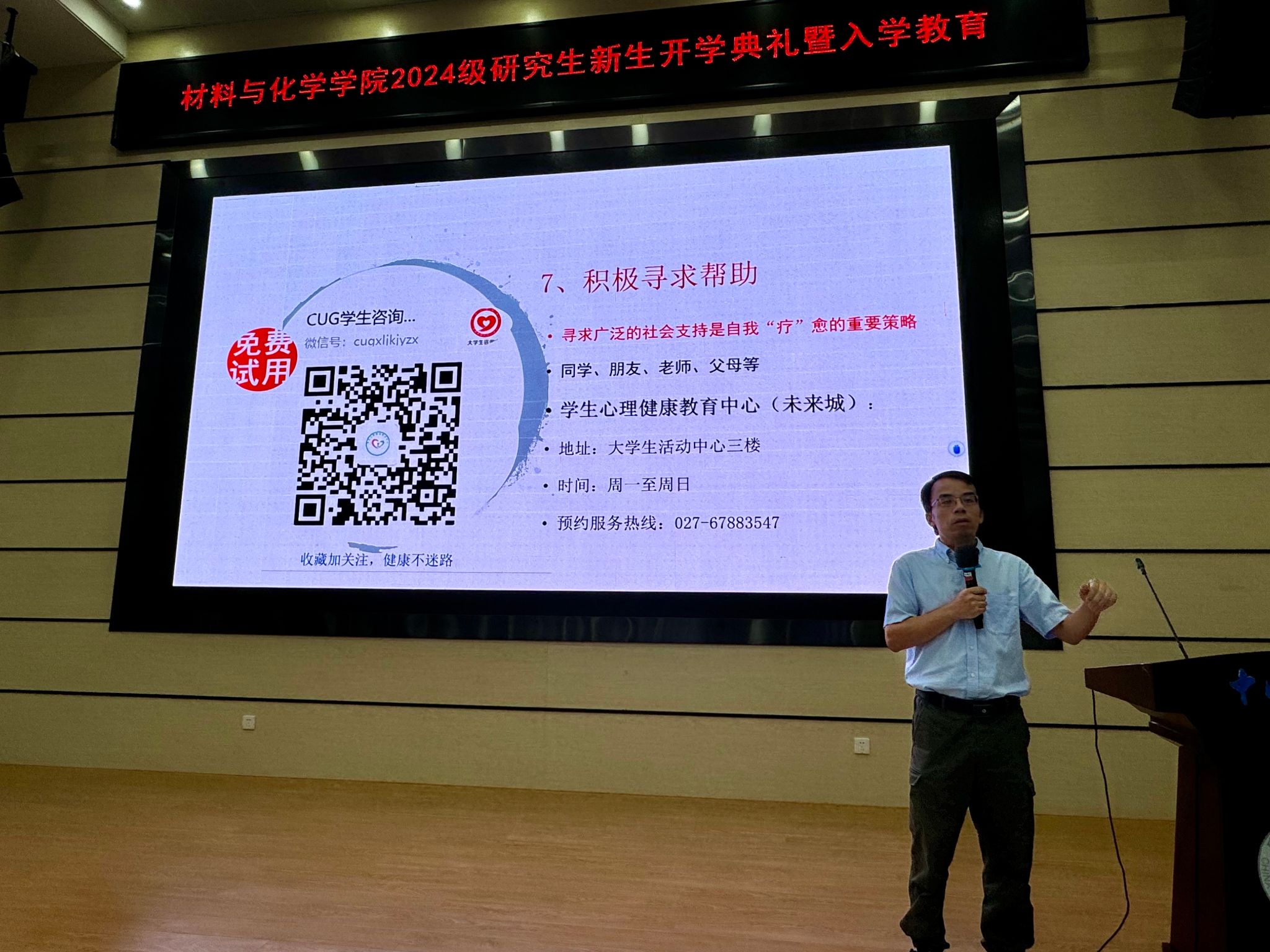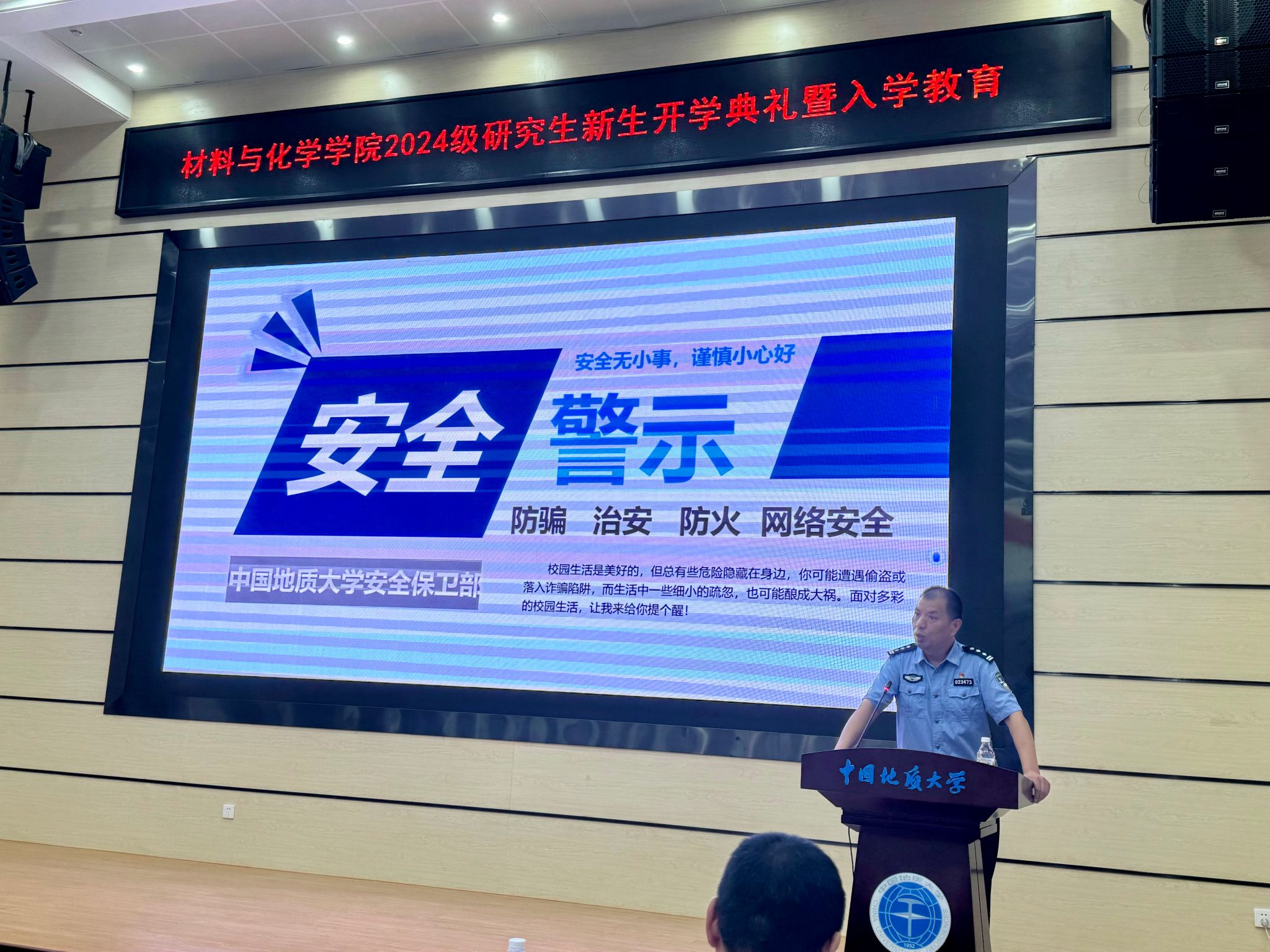 入学教育环节中,副院长周成冈、夏开胜,材料系主任梁玉军,化学系副主任张孝进,学校心理健康中心黄海,学校安全保卫部张献文及学院团委书记侯亚飞分别从研究生培养、实验室安全、专业介绍、心理健康、防诈骗、党团知识等方面与研究生新生做专题讲座。
