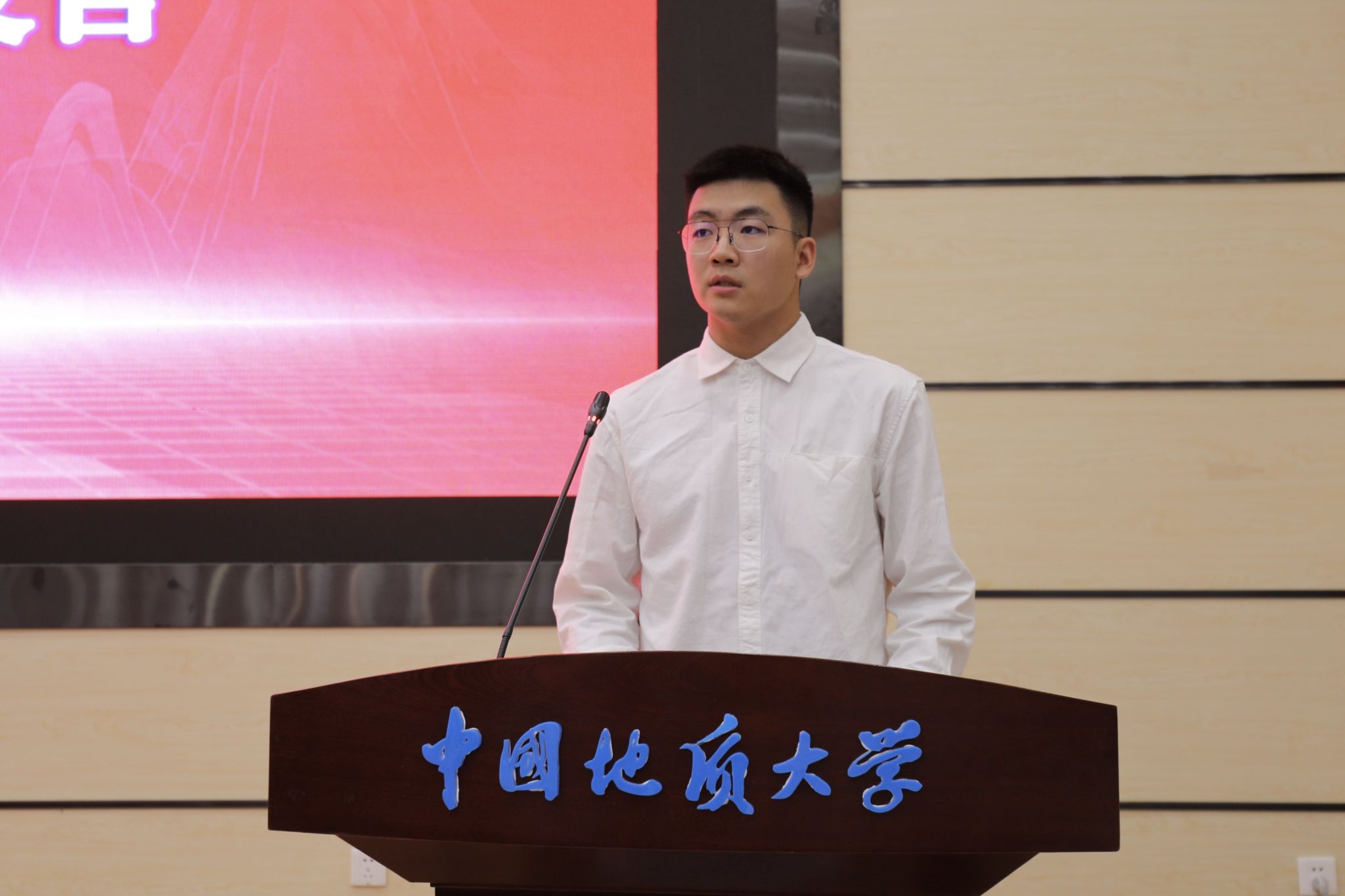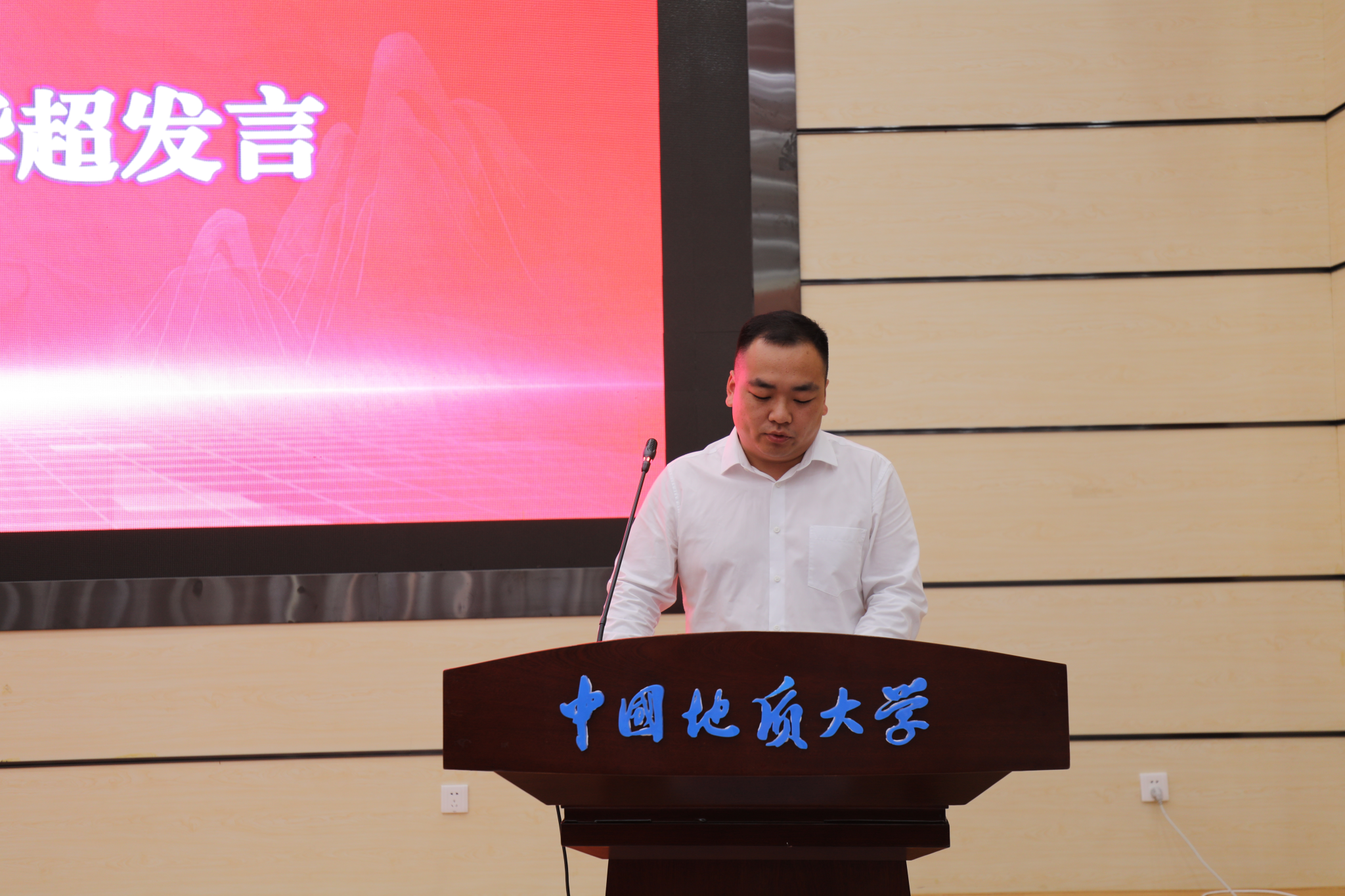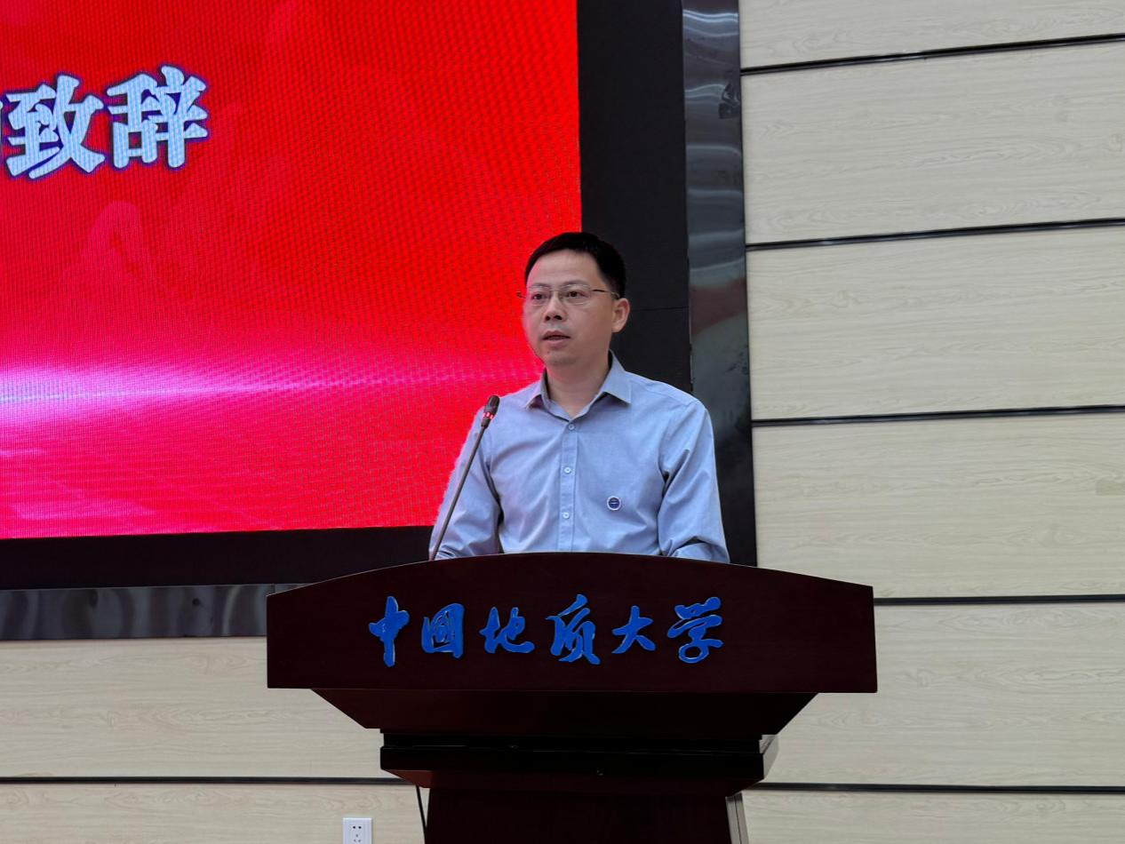 在校生代表、2022级博士研究生车华超发言。他回顾了自己在地大学习生活十年的感悟,他希望同学们在研究生学习中能够正确面对不确定性,沉住气慢慢来,大胆质疑,细心求证,将科研成果有效融入国民经济和社会发展中,把论文写在国家大地上,争做新时代有为地大材化人。