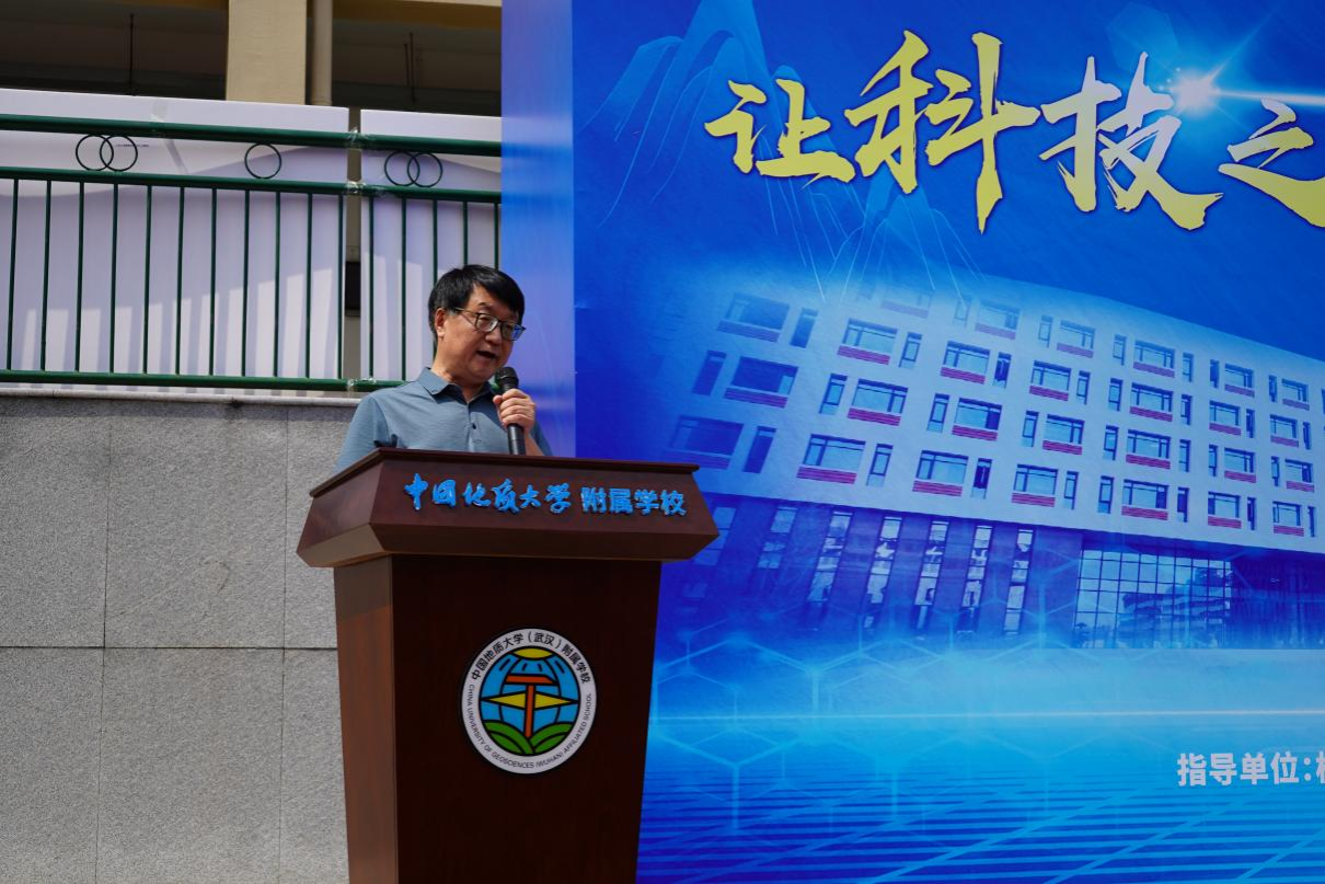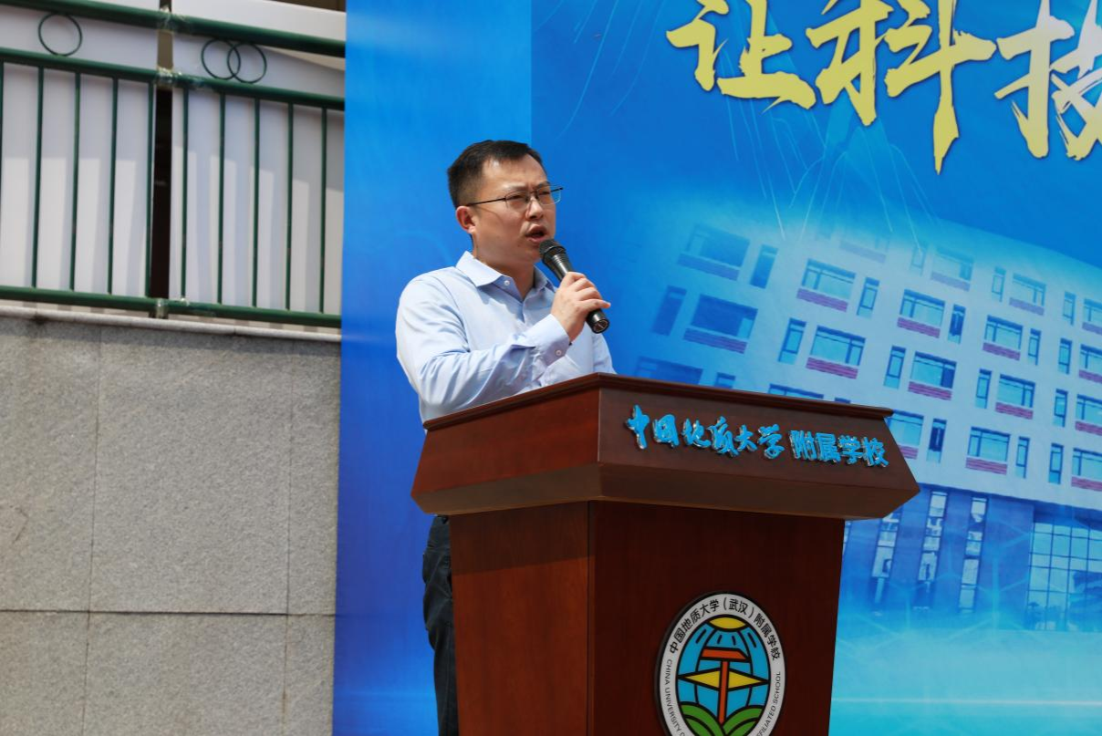 科普实践教育基地》铜牌;党委研究生工作部部长许德华向附属学校学生代表赠送科普图书。党委学生工作部部长邬海峰宣布活动开幕。