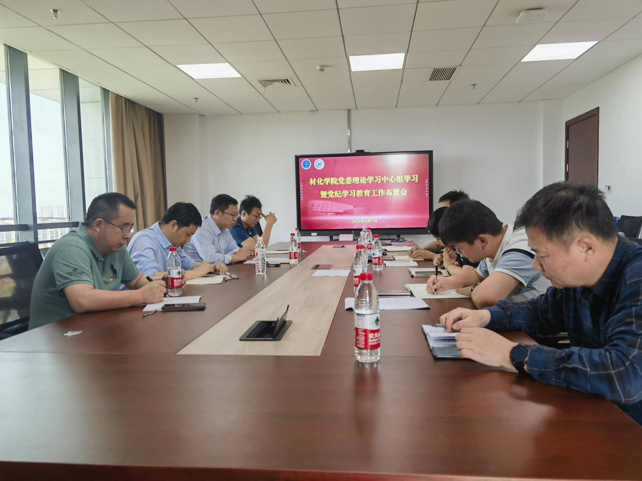 5月7日下午,材化学院党委在新校区教学服务中心611会议室召开党委理论学习中心组学习暨党纪学习教育布置会。院党委书记梁本哲主持会议,学院党委理论学习中心组成员、院领导班子成员、学院分团委书记等参加学习。 会上,梁本哲传达了学校《党纪学习教育实施方案》精神,结合学校党纪学习教育有关工作提示,要求党委委员、院班子成员要深刻认识党纪学习教育的重要意义,带头开展好党纪学习教育,要结合学院实际以及个人工作实际,在注重实效、学做结合、提高质量上下足功夫。 在集中学习环节,白振洋领学了《中国共产党纪律处分条例》。他强调纪律是党的生命线,是管党治党的“戒尺”,加强党纪学习教育,不仅是党要管党、全面从严治党的必然要求,也是推动学院各项事业健康发展的重要保证。他表示,为提升学习实效,学院将通过组织编印《党纪知识手册》、定期编发典型案例、将《条例》纳入主题党日规定学习内容等方式,实现以册导学、以案促学、以会常学的目的。 在交流环节,与会人员围绕前期学习体会、下一步学院工作安排等以及如何确保学习教育取得实效进行交流发言。 梁本哲就持续深入开展党纪学习教育提出四点要求。一是要切实把握学习要求,紧扣《条例》做到学思践悟,要进行对标自查,深刻检视反思,达到以学促干的效果。二是要坚持学做结合,将学习收获融入工作实践,不断增强党性修养、纪律意识,以实实在在的学习成效提升干事创业劲头。三是党员干部要做好带头示范,通过讲专题党课、列席主题党日等方式深化对支部的联系指导,确保党支部全覆盖要求落地落实。四是要抓好工作统筹,合理制定学院工作安排,将各项举措与日常工作深度融合,力戒形式主义,力求学习实效。(编辑:李晓晔 审稿:梁本哲)