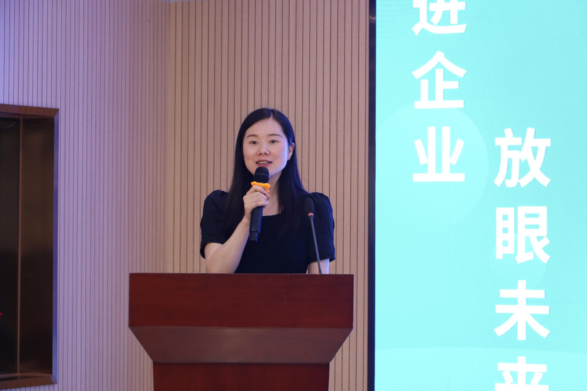 武汉经开区工委组织部副部长、人力资源局副局长钟芸以《智汇车谷 缘聚经开》为题详细介绍了武汉经开区的经济格局、区位条件和交通优势等总体情况,并对各方面人才引进后的经济、文化、交通、教育、医疗等方面保障进行了细致说明,她诚挚地向广大同学发出邀请,欢迎同学们学成毕业之后选择到经开区工作、生活。