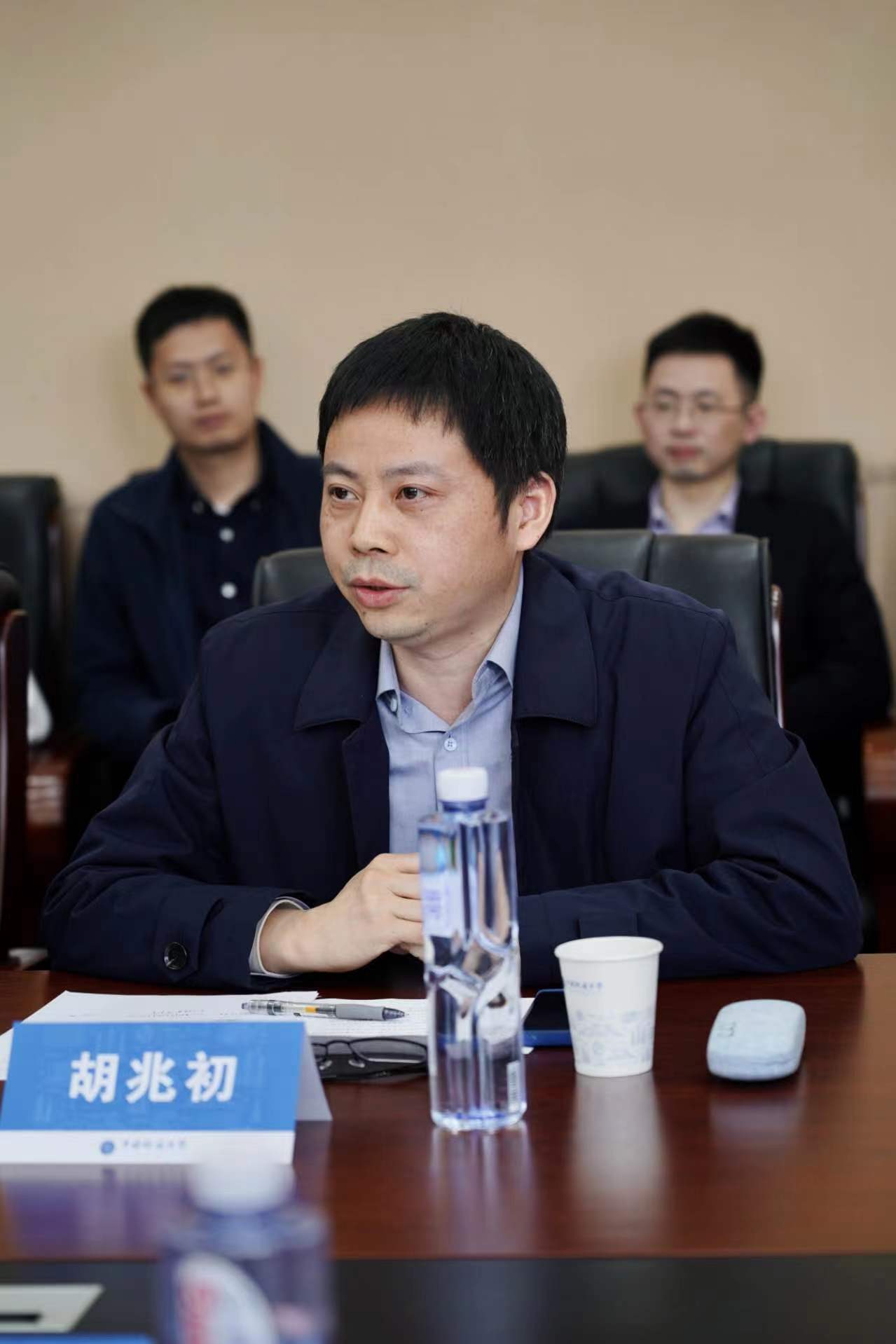 院长胡兆初介绍学院及靳洪允教授团队的基本情况,并表示期待校地企三方协同发展、广泛合作、共结硕果。