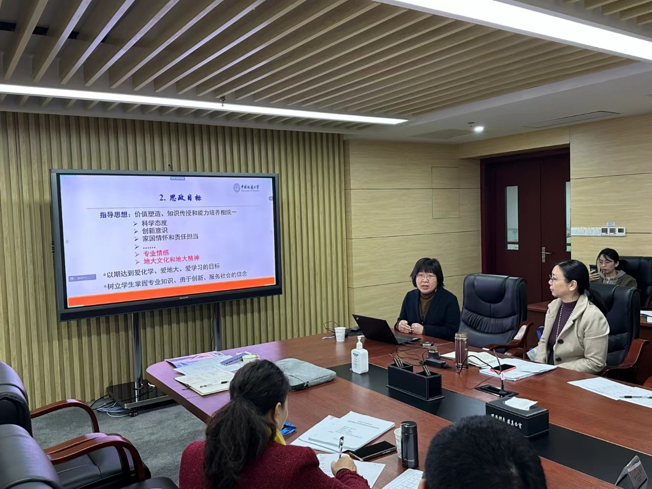 宦双燕教授随后进行了精彩点评,肯定了我院课程思政示范课建设取得的成效,指出各课程负责人能充分挖掘专业课程的思政元素,尤其是具有地大特色的思政元素,形成了课程思政的思路、理念和方法,部分课程还建设了案例库,在课程思政的理论方面有所创新,值得推广借鉴。同时,宦教授也结合教指委正在开展的工作,对学院教师在思政案例规范化与优化、教学设计多元融合以及课程思政评价研究等方面提出了建设性意见。